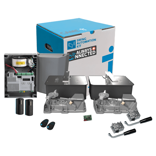 Complete kit for a pair of swing gates of up to 4.0m each leaf, 24 V D.C. motors.